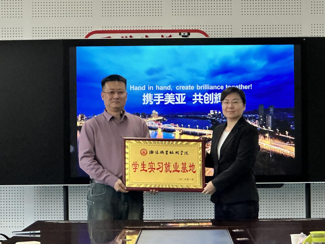 会议中,双方的共同见证下,我院与香港美亚特医营养科技(浙江)有限公司对毕业基地授予仪式正式完成授牌。随后在院方与香港美亚特医营养科技(浙江)有限公司领导的负责下,双方对这一重要时刻进行了合影留念。