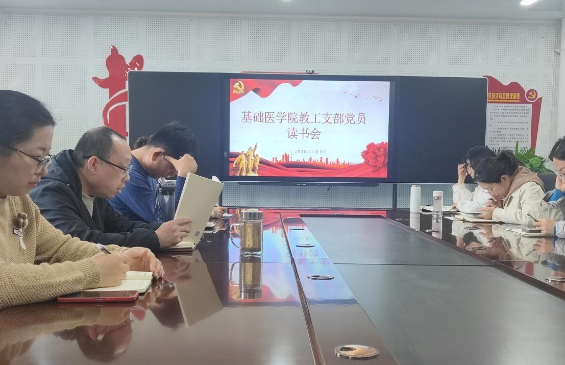 4月9日下午,基础医学院教工党支部在8-213会议室组织全体党员,举办专题读书会,集中学习《习近平关于树立和践行正确政绩观的论述摘编》。